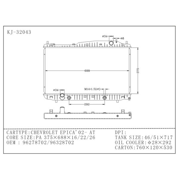 CHEVROLET EPICA ' 2002- For Ford Aluminum Radiator , OEM : 96278702 / 96328702